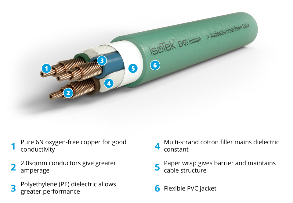 EVO3 Initium is IsoTek’s entry level power cable designed to offer high quality performance at an extremely fair price. Initium is a must for replacing all of your free standard black plastic power leads which have been designed down to a price not up to a quality.
